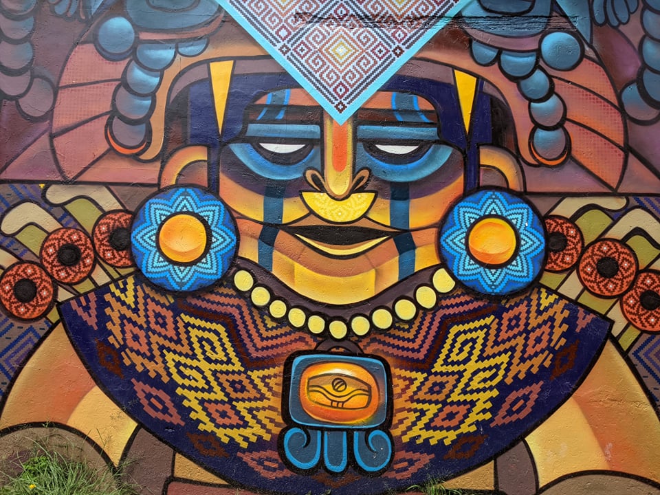 The hostel I stayed at in San Cristobal was 30% English boys being wankers (‘My Oxbridge application was going really well, but I got pissed the night before my maths exam. Classic me – it just happens! Wanna do shots on the canyon tour????’) However, UK lads on a publicised bender aside, it was a cool place. It lacked the cultural tenacity of Oaxaca, and felt a lot more curated for tourist appeal – vegan boutiques and raves galore – but once I completed the free walking tour, I realised that below its shiny surface thrived a hub of indigenous activity, intricate traditions and phenomenal scenery. Under the guidance of our enthusiastic and potentially tipsy guide, we walked for 3.5 hours whilst nursing severe hangovers and marvelled at the local street art and the vast, sprawling market in which local women sold handmade clothing. The guide explained the significance of this attire: the embroidery was skilfully hand-stitched, and the symbolism often related to indigenous ideology.