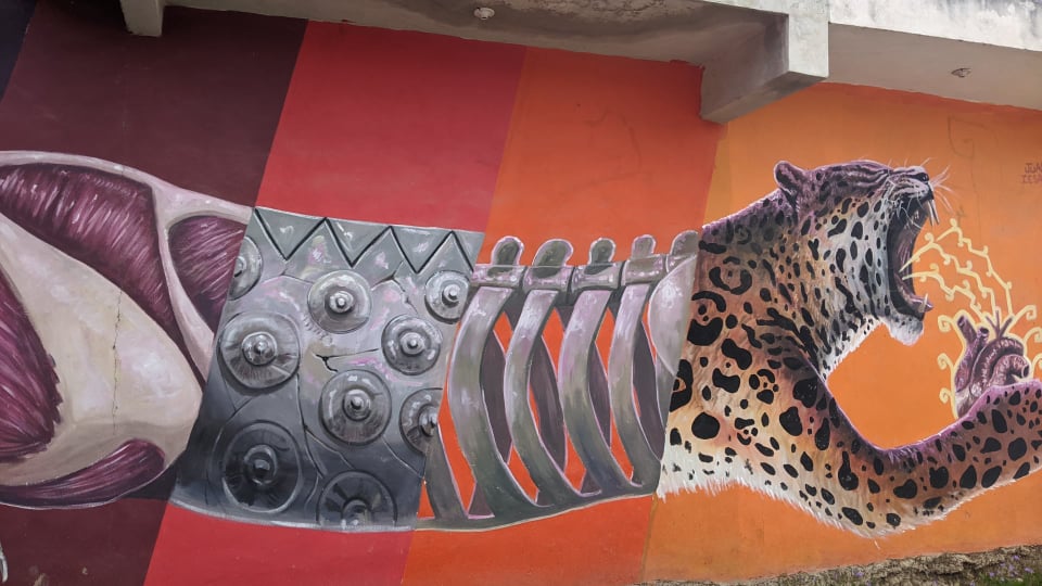 My friends arrived the next day, and we headed to the Cenote Azul (which was quite gassed up to me; it’s actually just another pleasant lake. It isn’t the most inspiring of the cenotes that I’ve visited, but it was dirt cheap to get in). The walk there took us a while, but we saw some dreamy views and artwork en route.